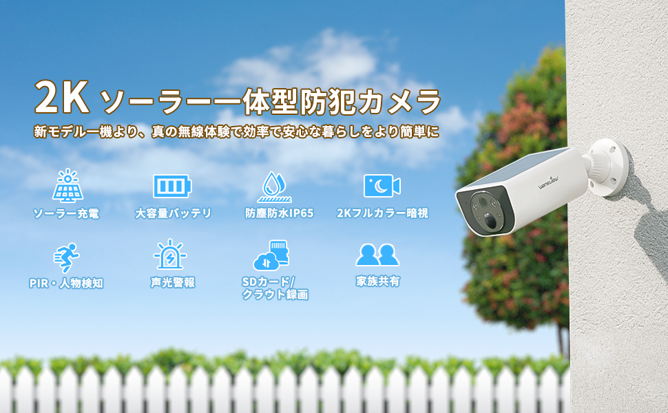 - 3MP ソーラーパネル一体型 充電式カメラ S1