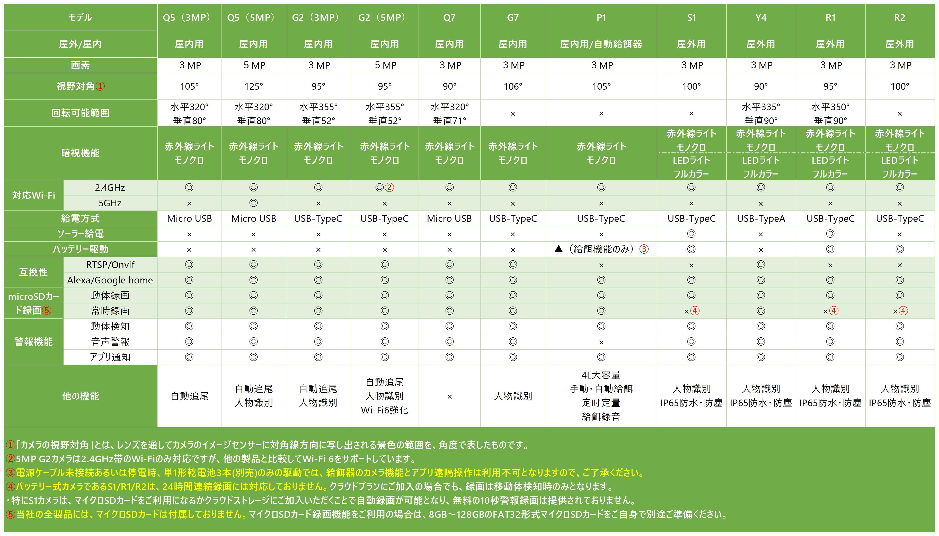 屋内用製品(全機種マイクロSDカード録画対応・2.4GHz WIFI必要)